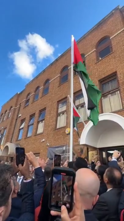 رفع العلم الفلسطيني على السفارة الفلسطينية في لندن